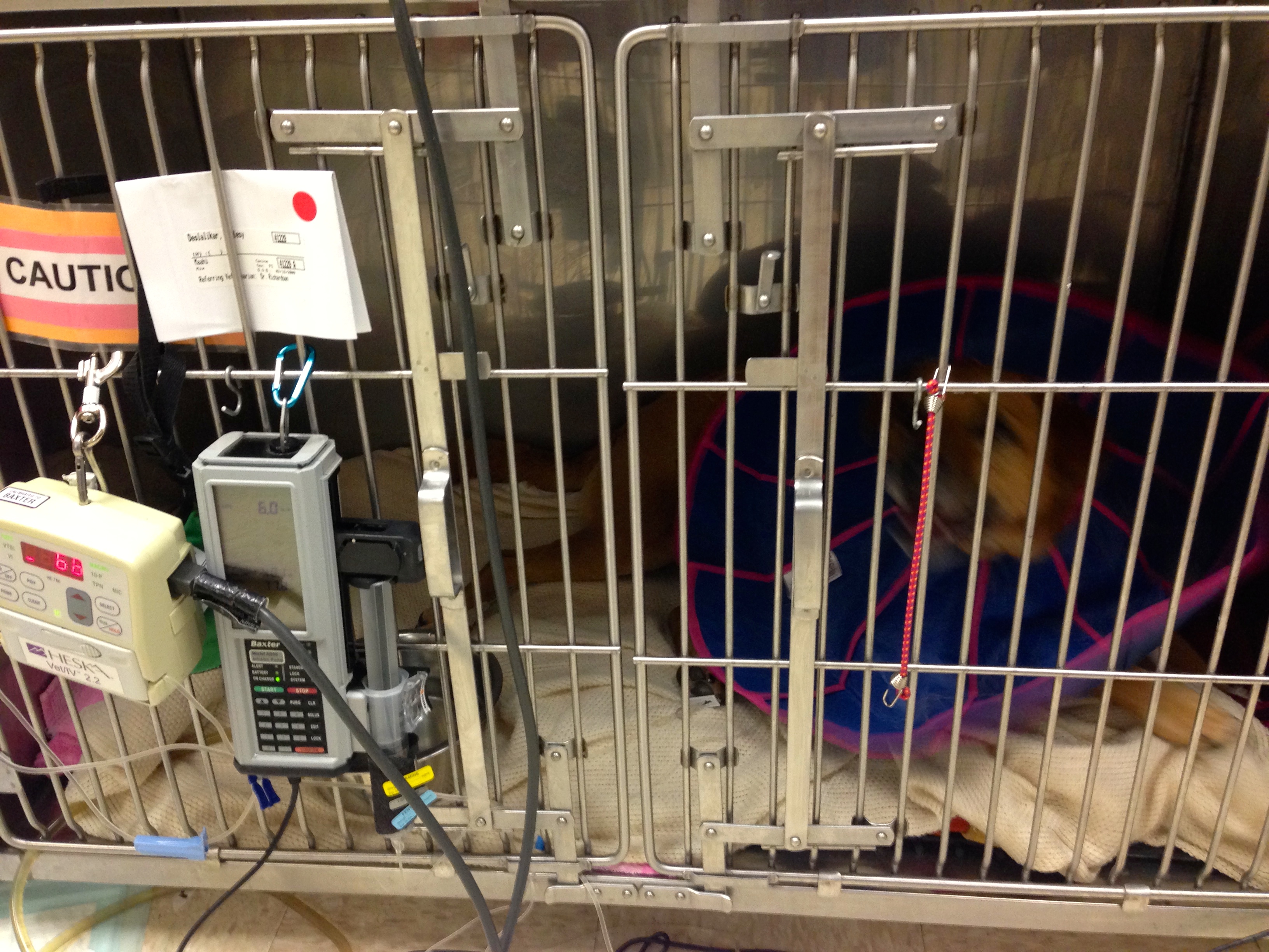 Maahi in ICUWe repeatedly asked Maahi’s surgeon if she would walk again. The surgeon said she couldn’t tell us anything right then or make false promises to us. She prescribed some exercises and asked to pray for patience and not to give up on our pup. Maahi would have to stay in the ICU for next five days and then go home with us. We were asked to visit her on all five days and learn how to express her urinary bladder manually because she had lost all the motor control to the hind side of her body.