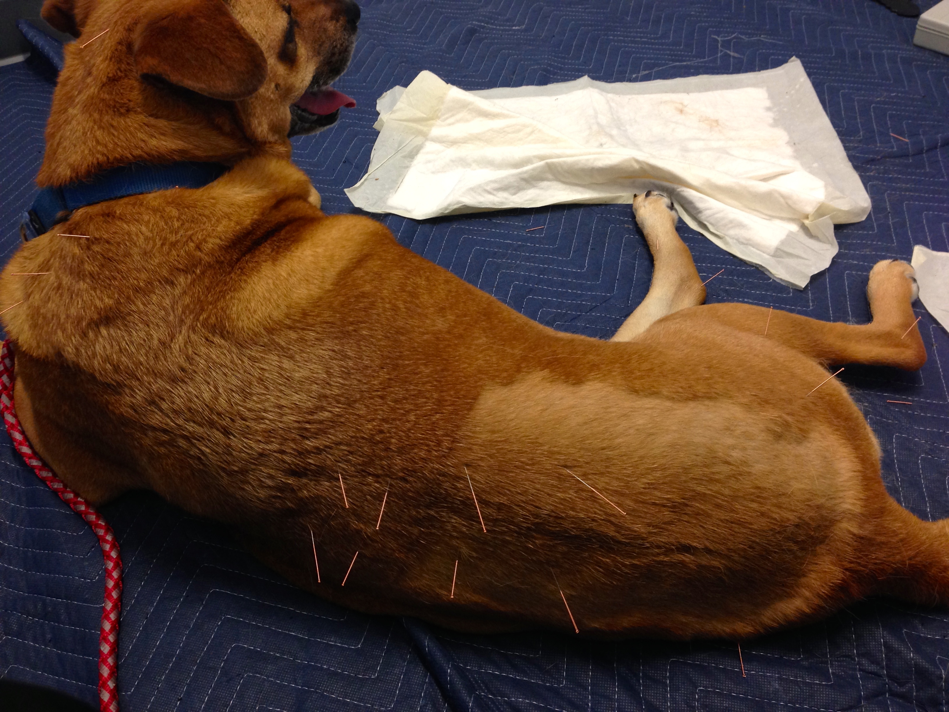 Accupunture sessionIt has now been a little over 3 months and we are still working with her and doing everything we can to make her walk again. Maahi now goes to a rehabilitation center twice a week to get her aquapaws therapy. At the rehabilitation center, Maahi is placed on an underwater treadmill. I was told that water helps build resistance in the muscles. Dropping her off to a rehab that was located very far from home and then going straight to work had become a tiring routine but I wasn’t willing to give up on her. On some days I carried extra pair of clothes and shoes in case she lost her bladder control.
